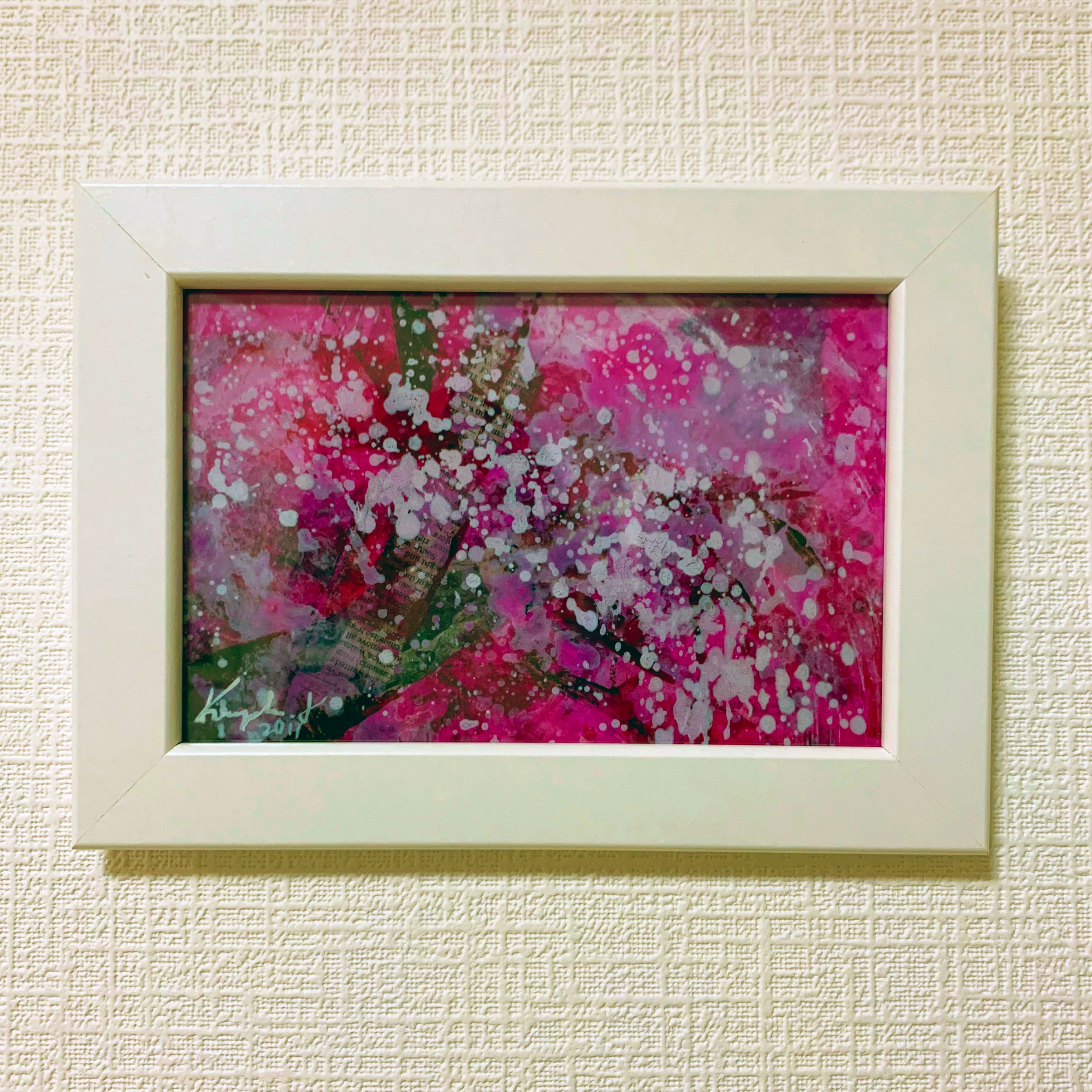 作品のポストカード(印刷)をセットした、かわいいミニフレームです。