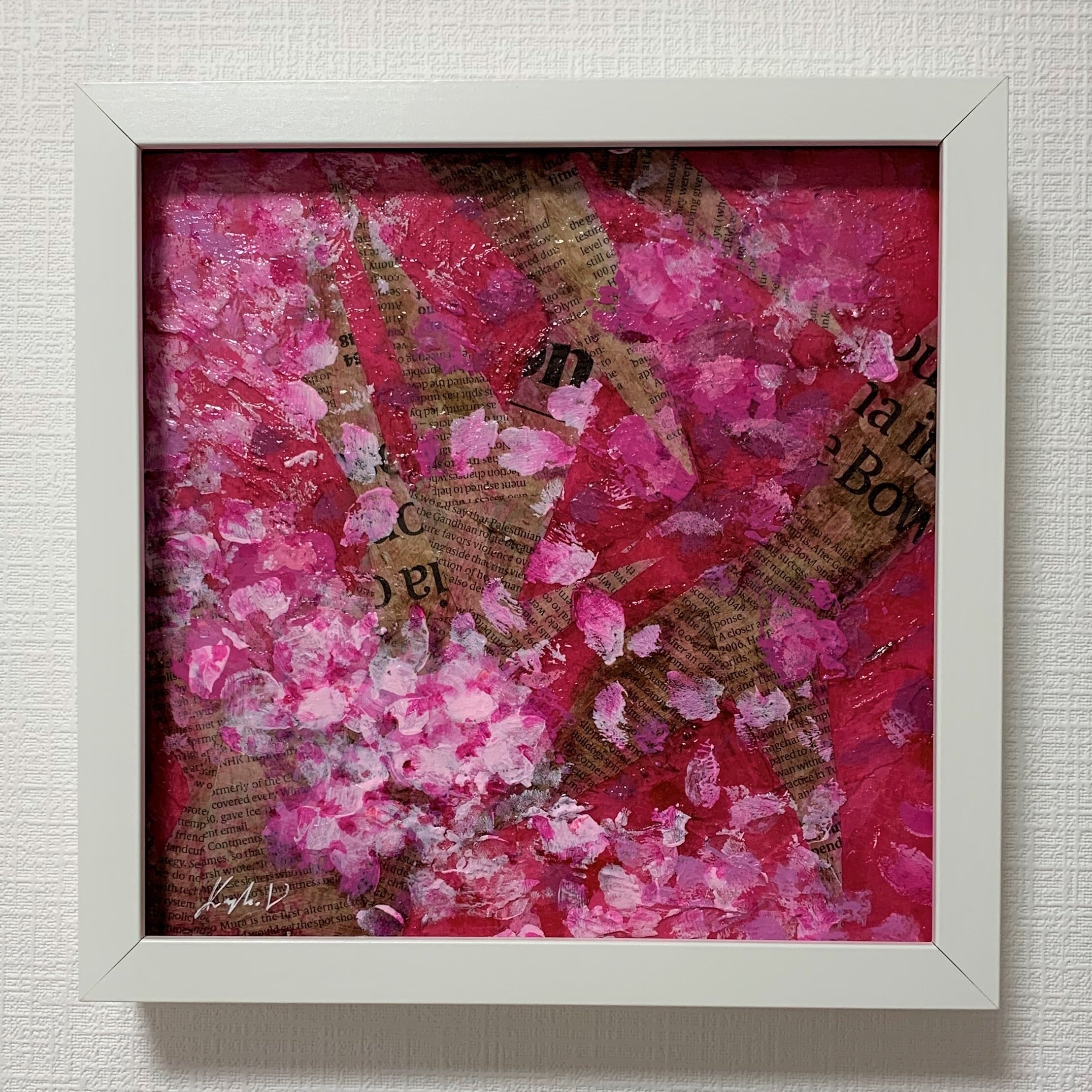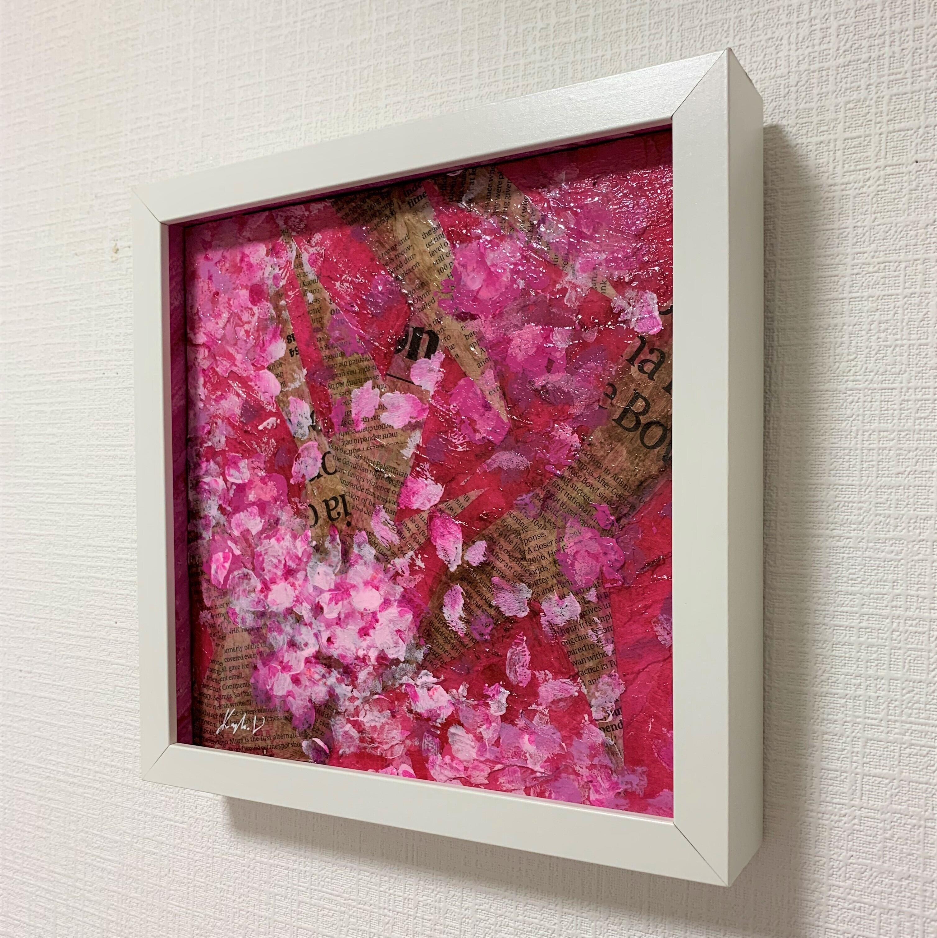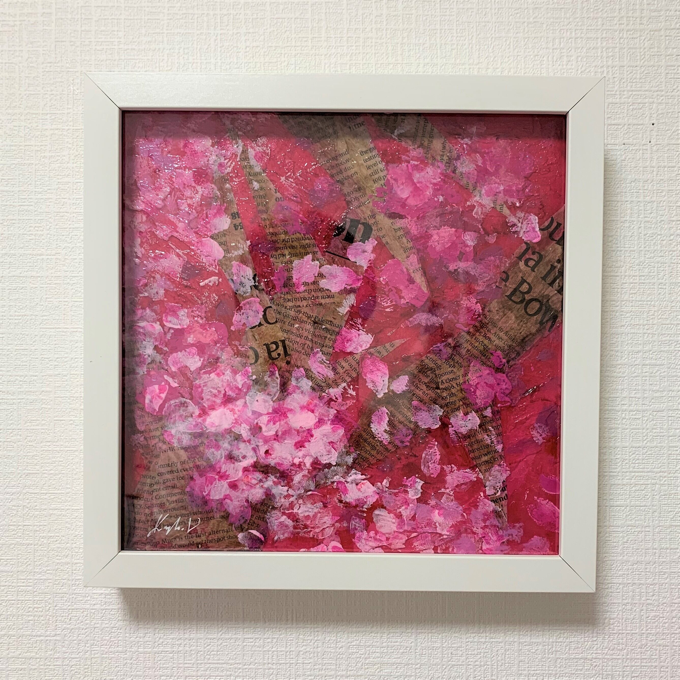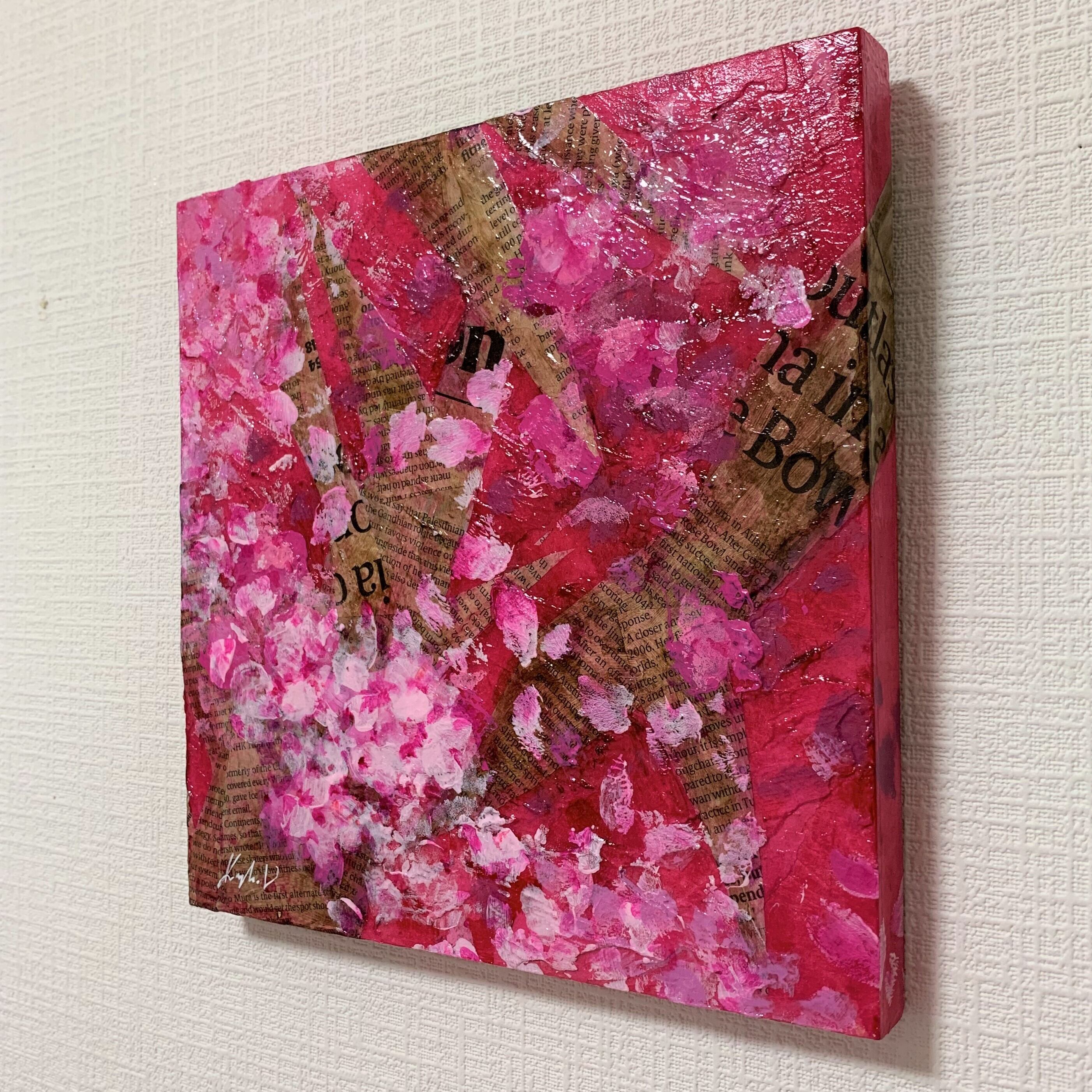 木製パネルにミクストメディア